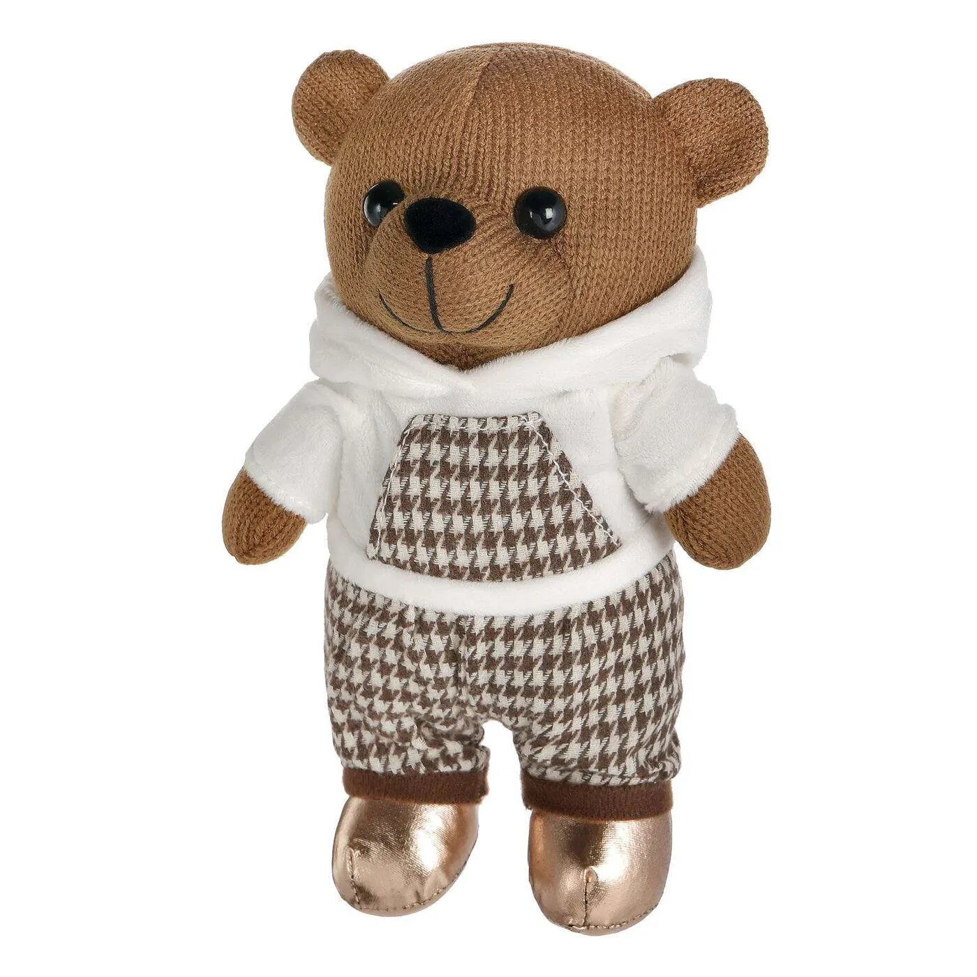 Очаровательная уютная игрушка Мишка-мальчик в костюмчике в стиле casual. Белый худи дополнен деталями в тон клетчатым брючкам, а ботиночки завершают образ. Оригинальная вязаная игрушка наверняка станет любимицей ее маленького обладателя, а также стильной деталью в интерьере комнаты. Игрушка выполнена из качественных искусственных материалов, что делает ее безопасной и долговечной в использовании. Не требует специального ухода. Во избежание деформации рекомендуется деликатная стирка.