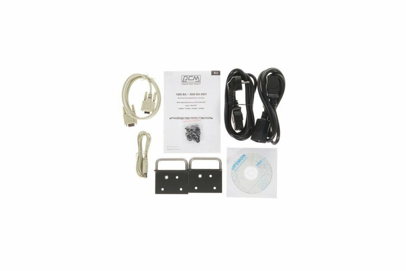 | Комплектация | CD-диск (UPSMON Pro), кабель RS232, кабель USB, кабель для подключения защищаемого устройства, кабель питания, подставка |