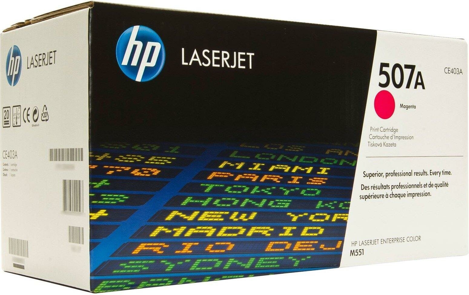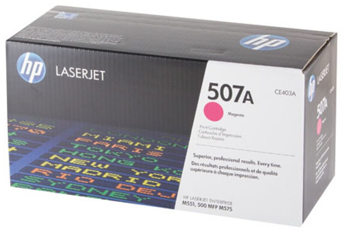 Пурпурный картридж с тонером HP 507A LaserJet обеспечивает высокую производительность. Забудьте о перебоях в работе и повторной печати. Создавайте высококачественные документы и презентации. Экономьте время и деньги, печатая маркетинговые материалы в офисе.
