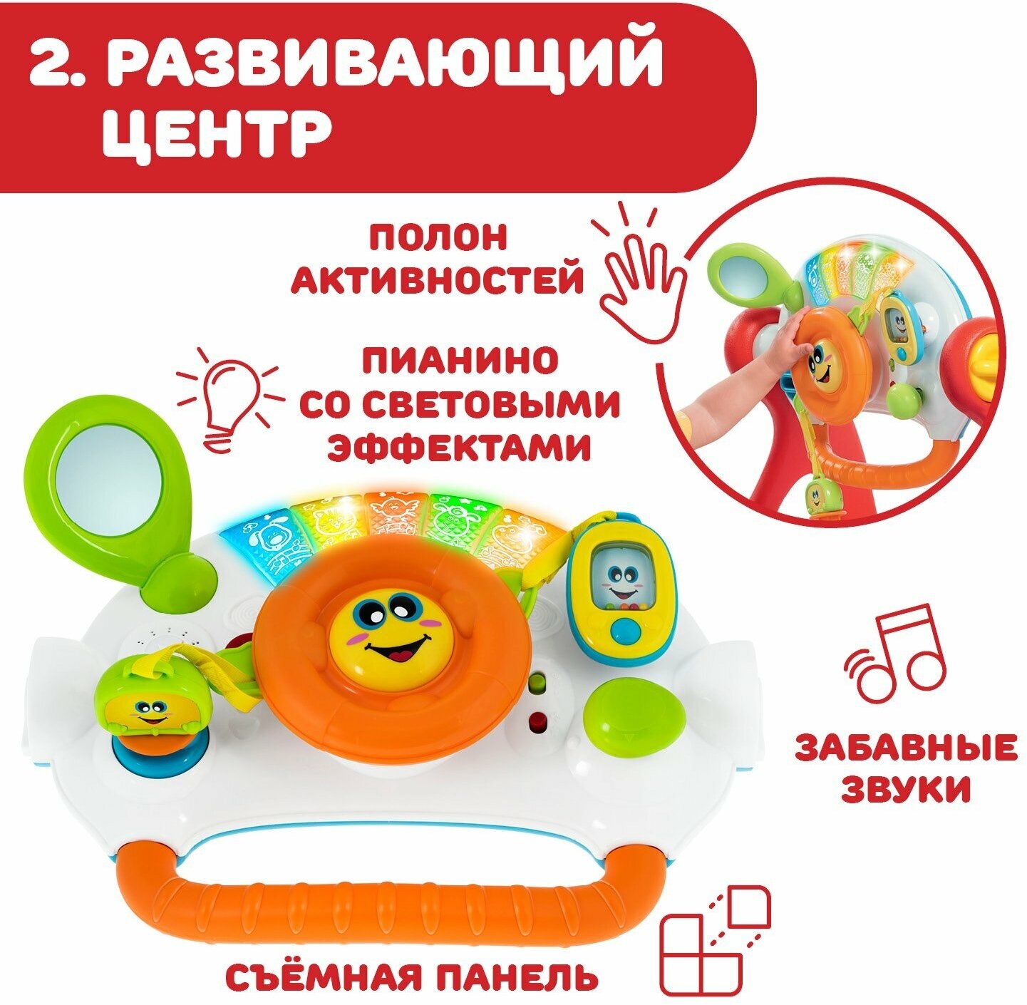 - 4 положения для игры: лежа, сидя, "первые шаги" и стоя.