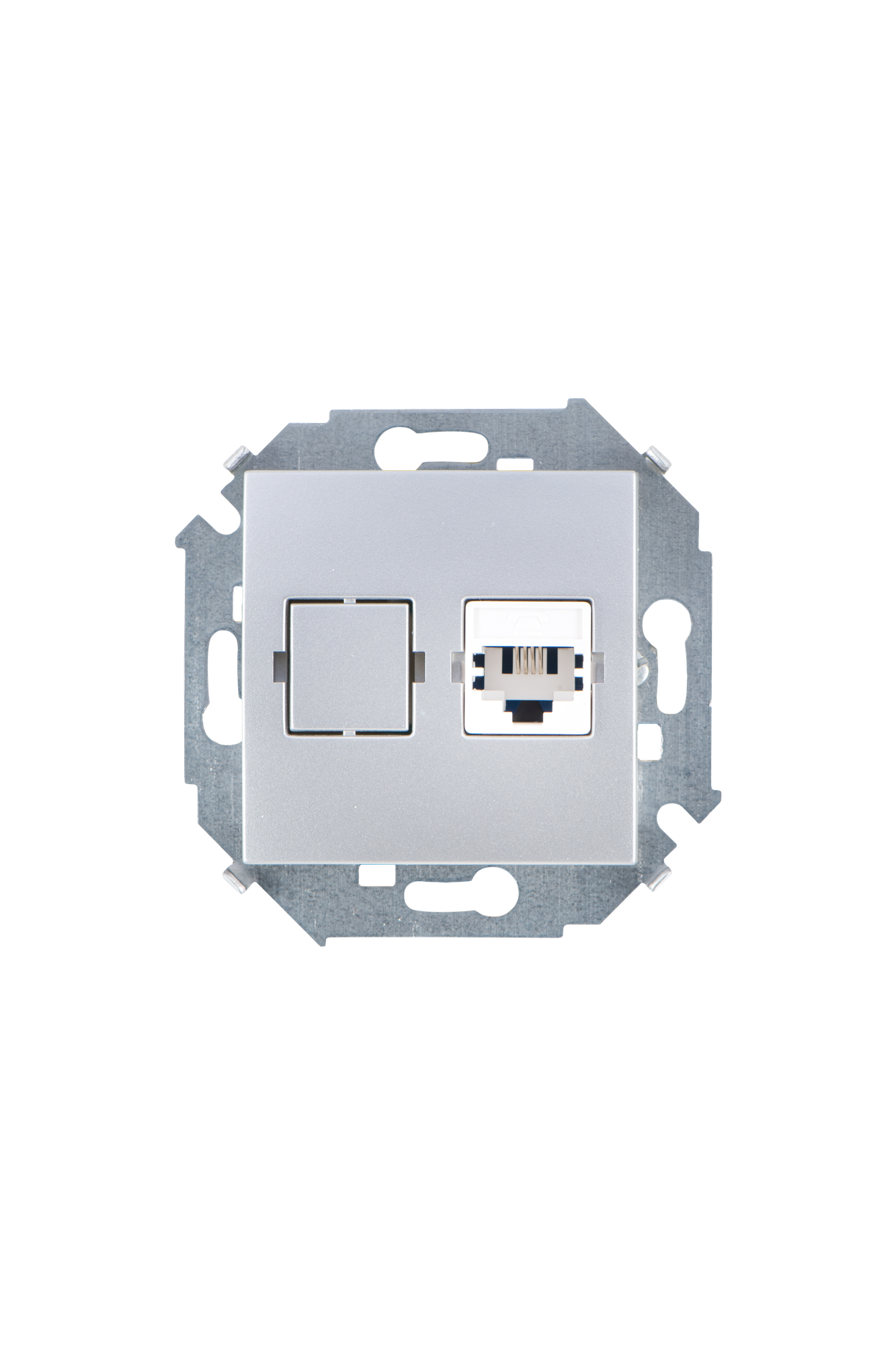 15 1591480-033 Розетка телефонная (RJ11 под рамку скрытая установка алюминий) Simon