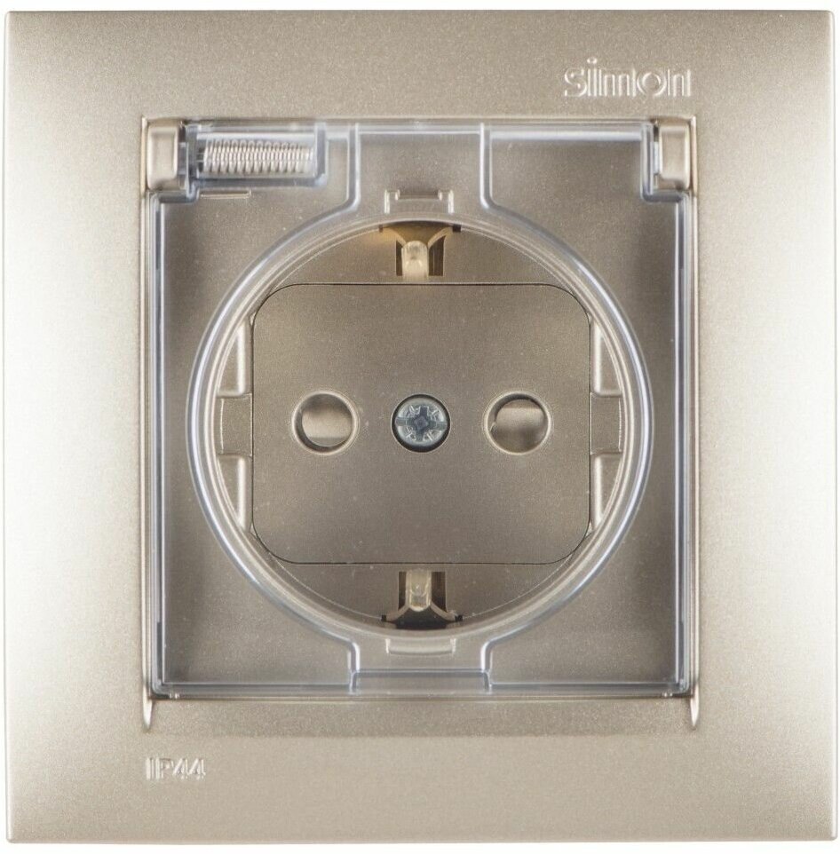 15 1590450-034 Розетка одиночная (16 А з/к шторки крышка в сборе скрытая установка шампань) Simon