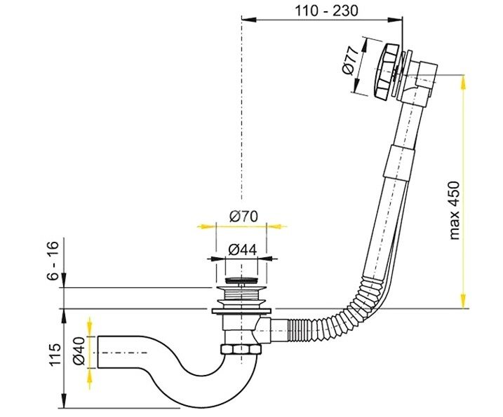 | Комплектация | Корпус слив перелив с раздвижной соединительной трубкой (латунь, медь) - 1 шт. Декоративная накладка перелива - 1 шт. Сливная пробка с резьбой (латунь) - 1 шт. Отвод с гайкой (латунный) 40мм - 1 шт. Набор прокладок (резина, пластик) |