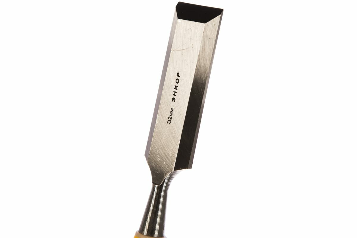 Стамеска 32мм Энкор - это ручной столярный инструмент, который предназначен для работы с заготовками из различных пород древесины. Стамеска имеет широкую рабочую часть, что позволяет производить обработку больших поверхностей. Изделие подходит для строгания, снятия фасок, зачистки и выборки углублений и т. д. Стамеска удобно лежит в ладони в процессе работы.