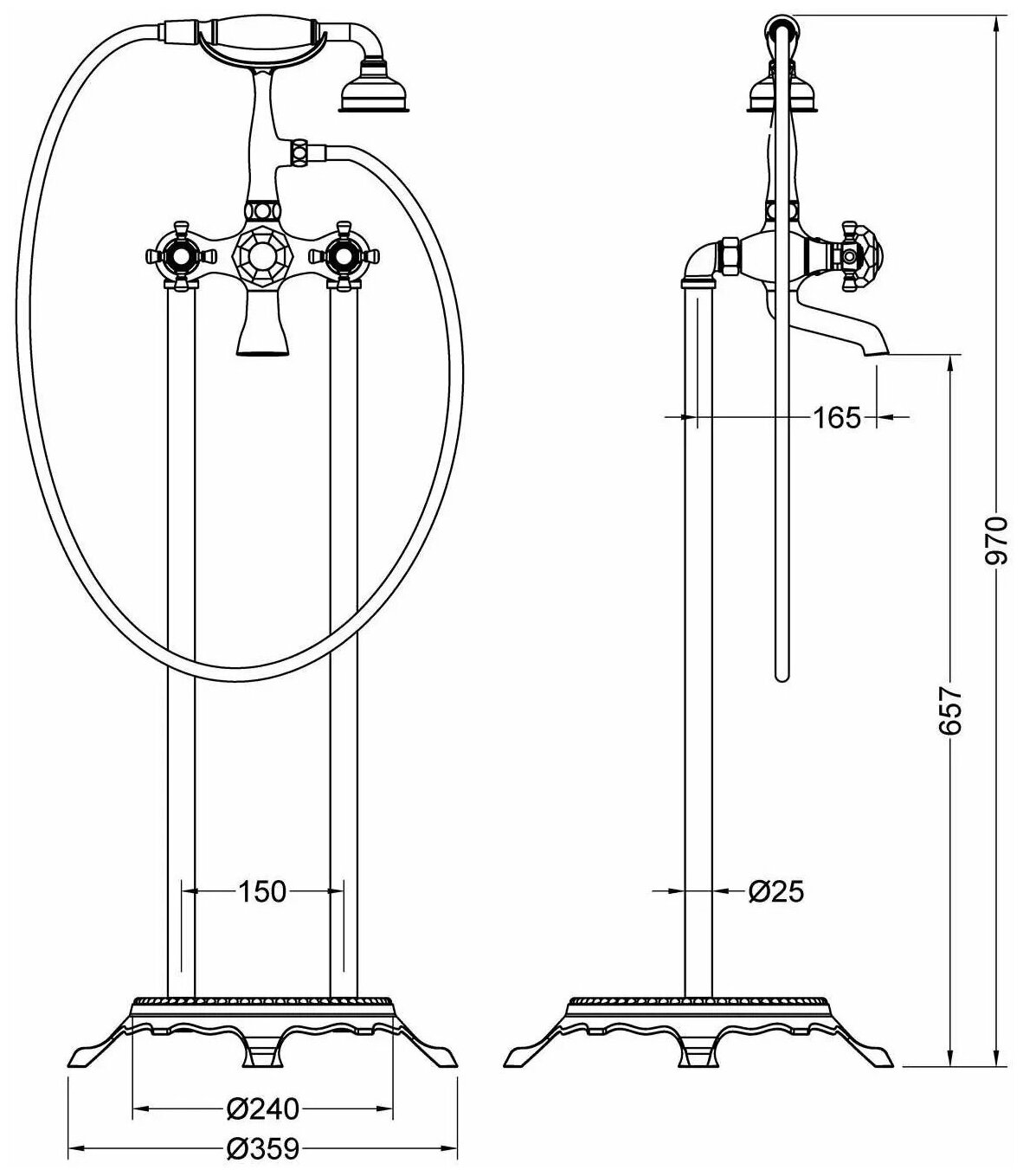 Напольный однорычажный смеситель с фиксированным изливом имеет долгий срок эксплуатации за счет качественных деталей, неприхотлив в уходе. Дополнит любой интерьер в классическом или ретро стиле.