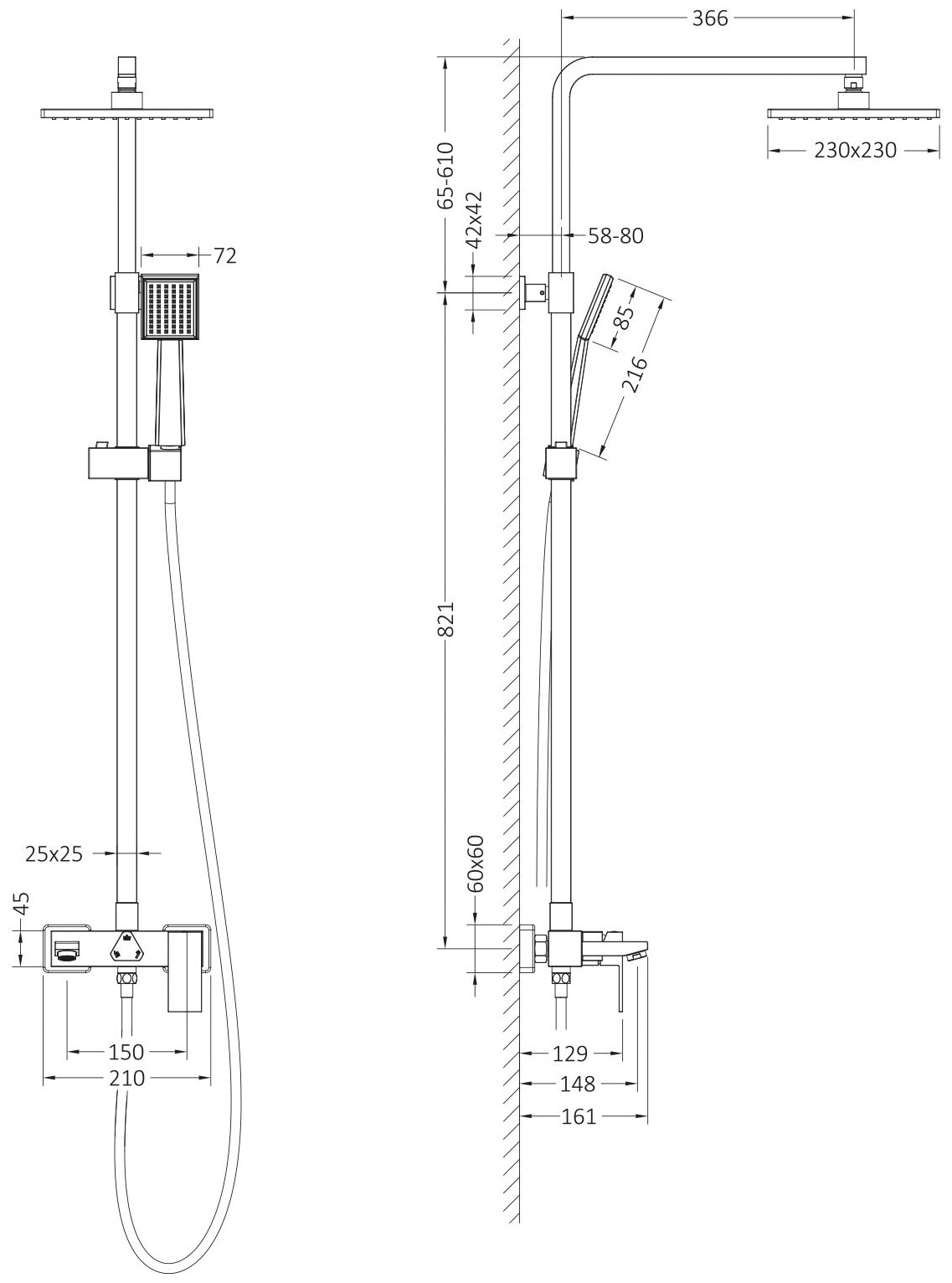 | ВКоробке | Душевая стойка - 1 шт. Лейка - 1 шт. Шланг - 1 шт. Верхний душ - 1 шт. Смеситель - 1 шт. Держатель для душа - 1 шт. S - образные эксцентрики - 2 шт. Крепеж - 1 шт. Инструкция - 1 шт. |