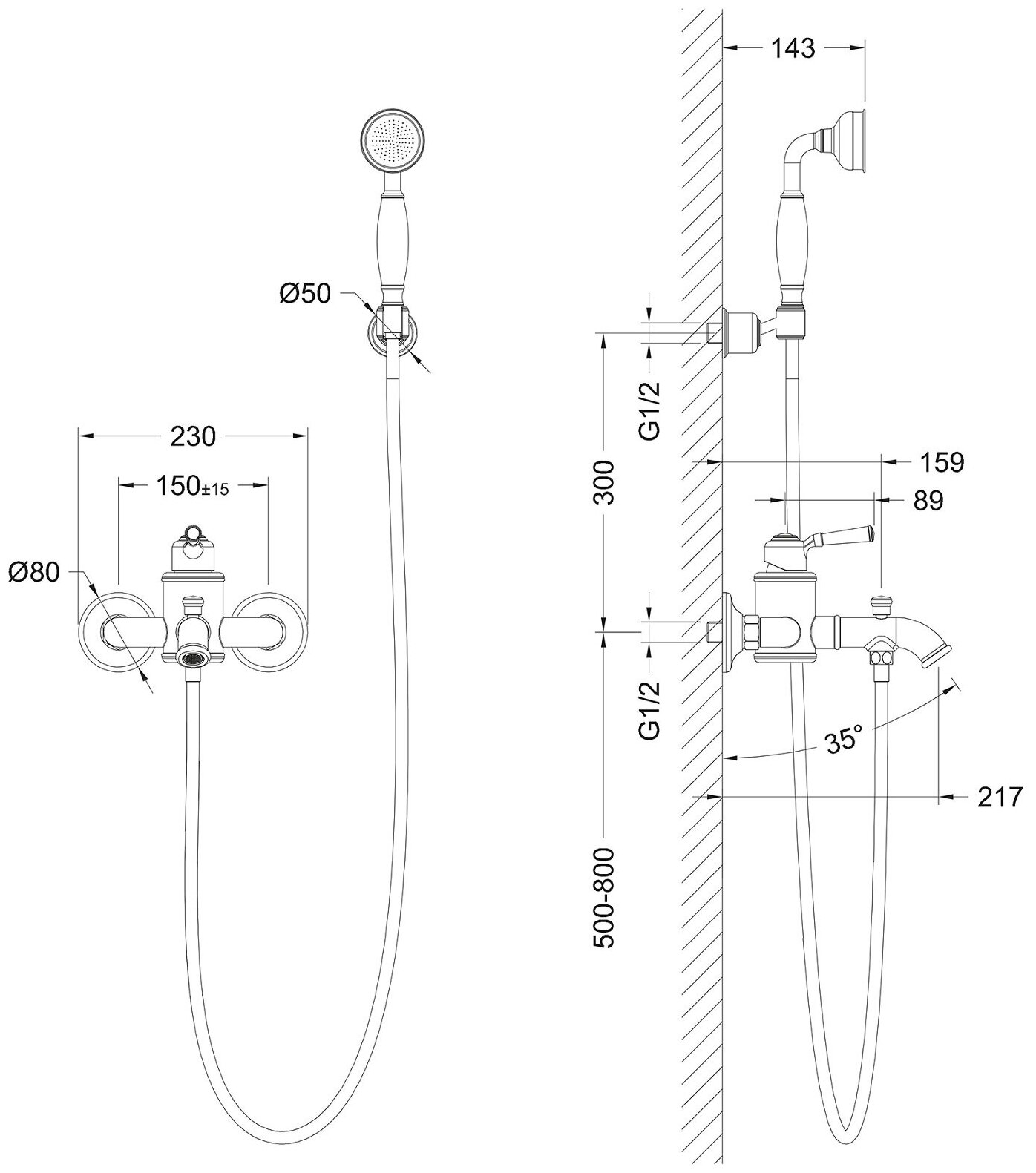 | Оснащение | эксцентрики,настенный держатель,душевой шланг,душевая лейка |