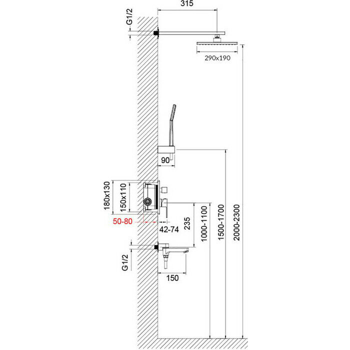 | Высота душевой штанги | 230 см |