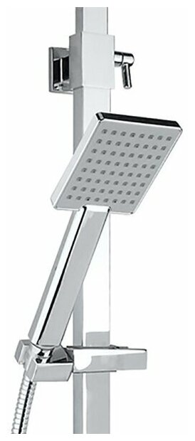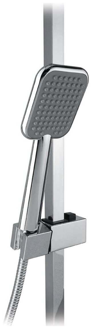 | Комплектация | смеситель, душевой шланг, душевая лейка, держатель для душевой лейки, верхний душ, штанга, инструкция |