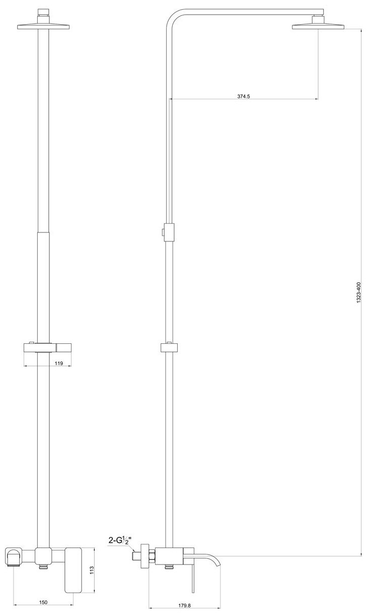 | ВКоробке | Душевая стойка - 1 шт. Верхний душ - 1 шт. Лейка - 1 шт. Держатель для душа - 1 шт. Шланг - 1 шт. Смеситель - 1 шт. Эксцентрик - 2 шт. Инструкция - 1 шт. |
