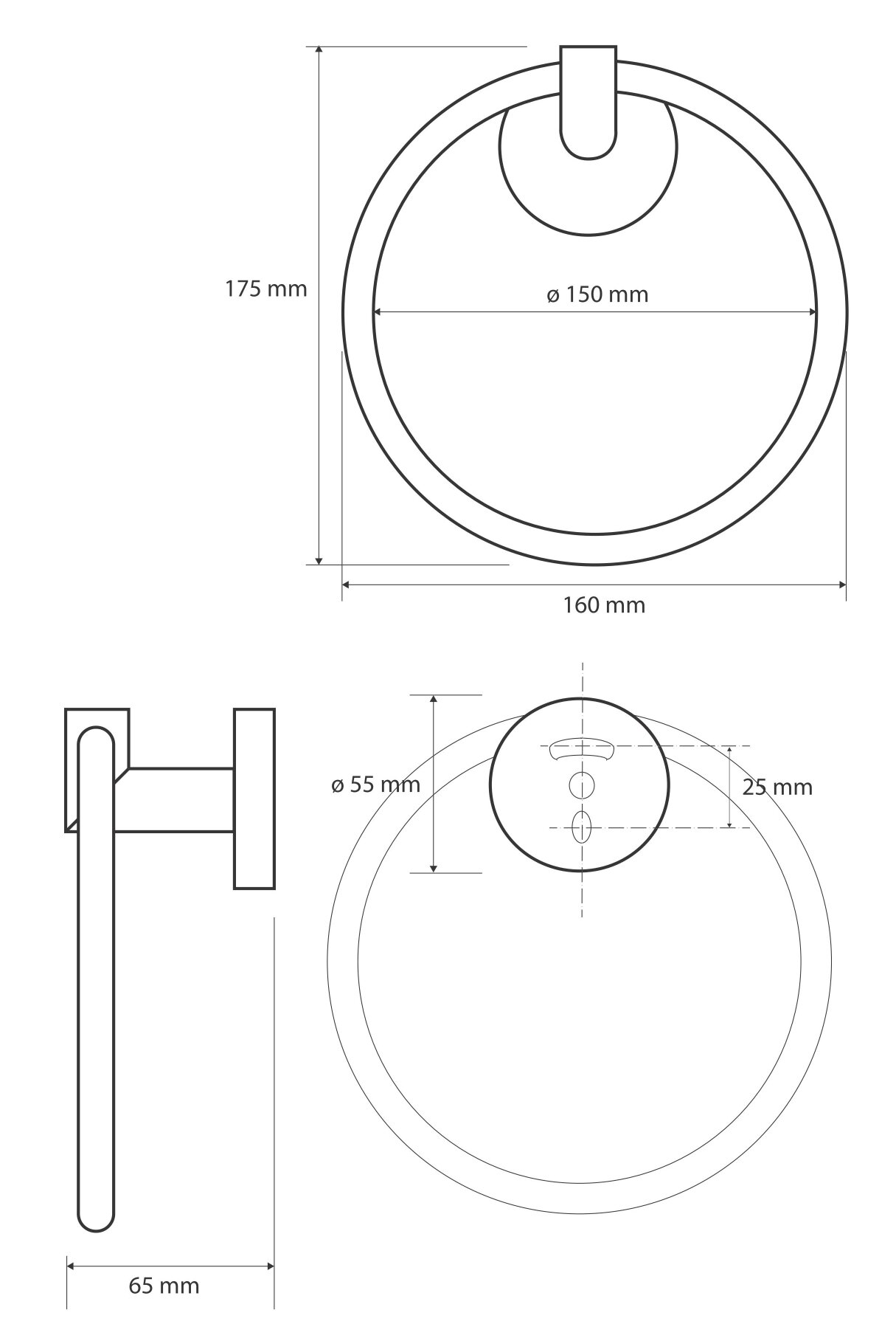 Полотенцедержатель круг, черный. высота: 181 mm, ширина: 161 mm, глубина: 56 mm