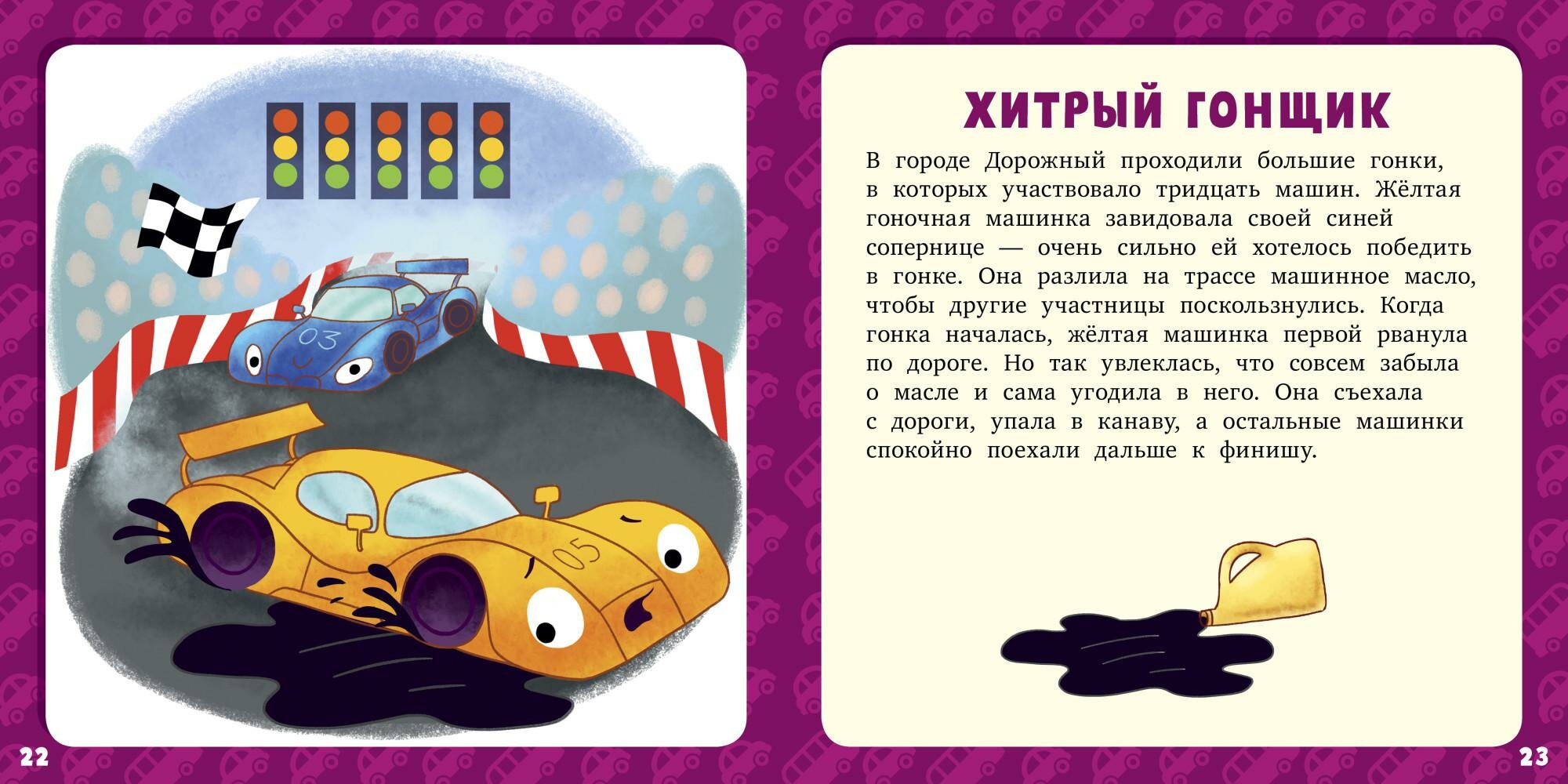 Отличная книга, пожалуй, любимая у моего ребенка. Очень поучительные истории про автобус, который поддержали пассажиры, строительную технику, которая вместо работы выясняла, кто круче, грузовик, у которого заглох мотор от обжорства, неблагодарный трактор, заносчивый кабриолет и другие.