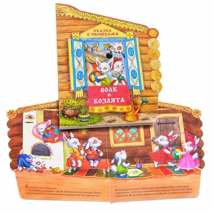 Замечательная интерактивная книжка «Волк и козлята» серии «Сказки с окошками» обязательно станет любимой! На страницах с открывающимися окошками и дверями оживают герои любимой русской народной сказки «Волк и козлята» в классической обработке А. Н. Толстого.Яркие красивые иллюстрации обязательно понравятся вашему малышу. Нарядную книжку в форме избушки можно не только читать – с ней можно играть, как с игрушкой.