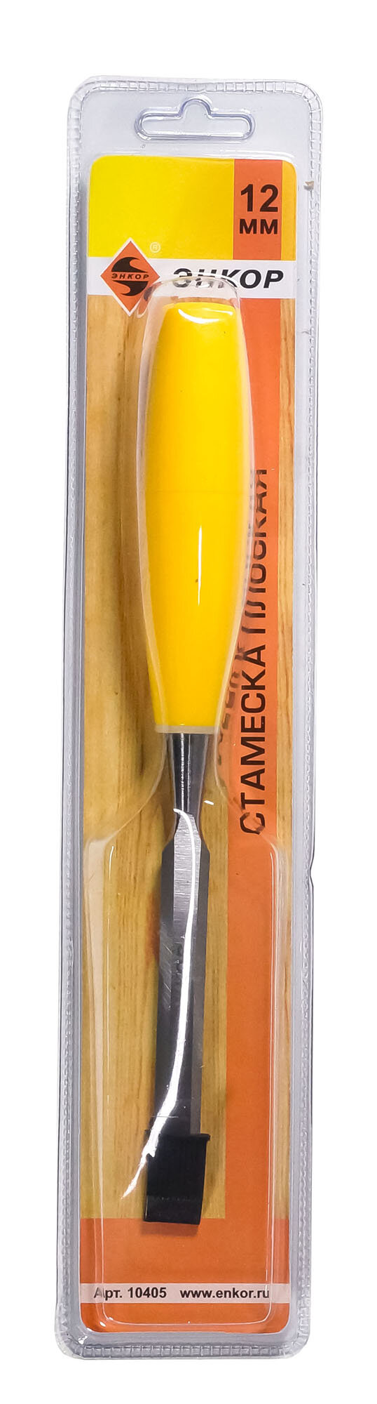 Стамеска 12 мм Энкор - инструмент для строгания деревянных заготовок, прорезания отверстий и пазов, обработки фасок и т. д. Лезвие плоской формы выполнено из качественной стали. Пластиковая рукоятка делает рабочий процесс более удобным. Внутри неё расположен металлический стержень. Для смягчения ударов между стержнем и телом инструмента предусмотрена полость.