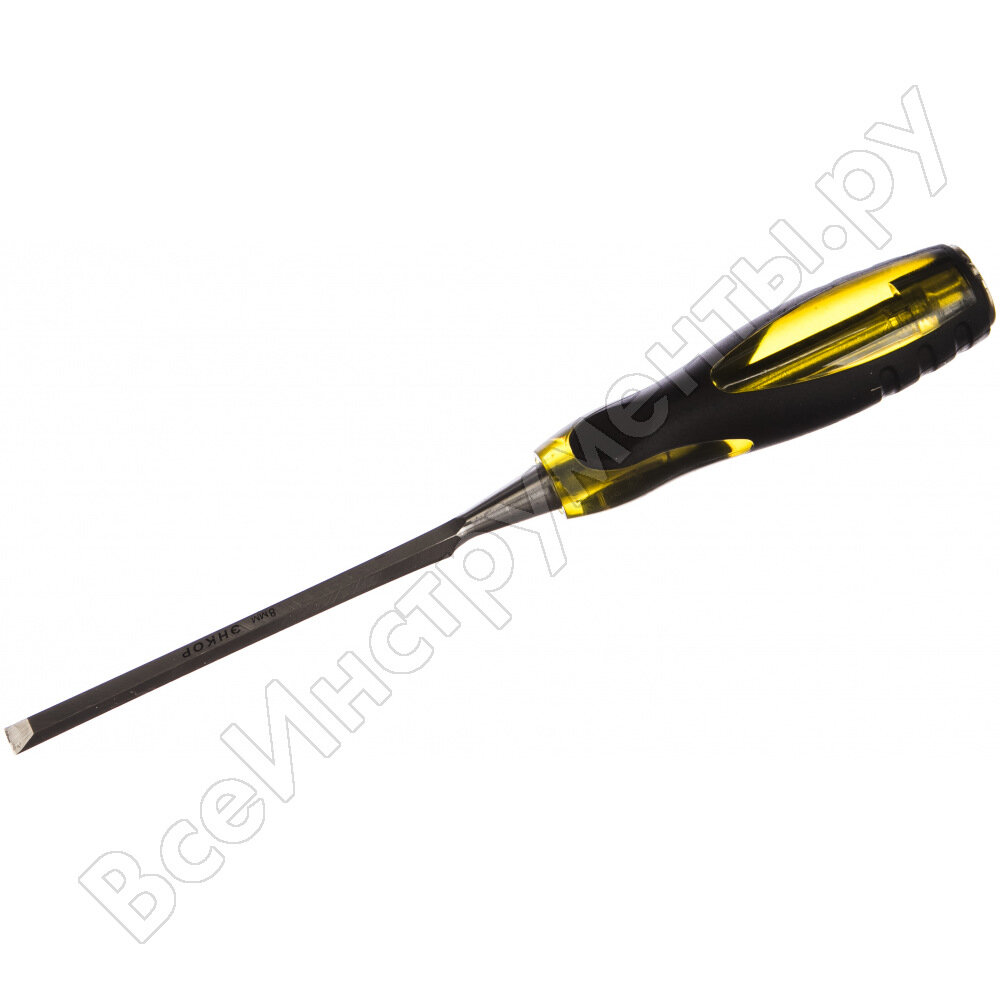 Стамеска-долото 8мм Энкор - это ручной инструмент для работы с деревянными изделиями. Стамеска предназначена для строгания, прорезания пазов и отверстий и пр. Стамеска-долото состоит из прочной пластиковой рукояти и стального жала плоской формы. Внутри рукоятки расположен металлический стержень. Для смягчения ударов между стержнем и телом инструмента предусмотрена полость.