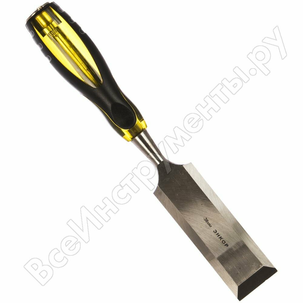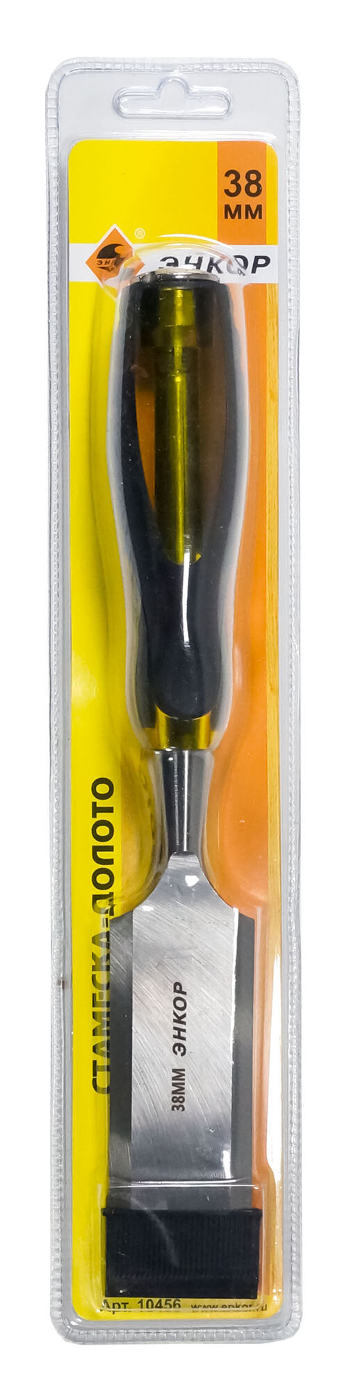 Стамеска-долото 38 мм Энкор - инструмент для строгания деревянных заготовок, прорезания отверстий и пазов, обработки фасок и т.д. Лезвие плоской формы выполнено из качественной стали. Пластиковая рукоятка делает рабочий процесс более удобным. Внутри неё расположен металлический стержень. Для смягчения ударов между стержнем и телом инструмента предусмотрена полость.
