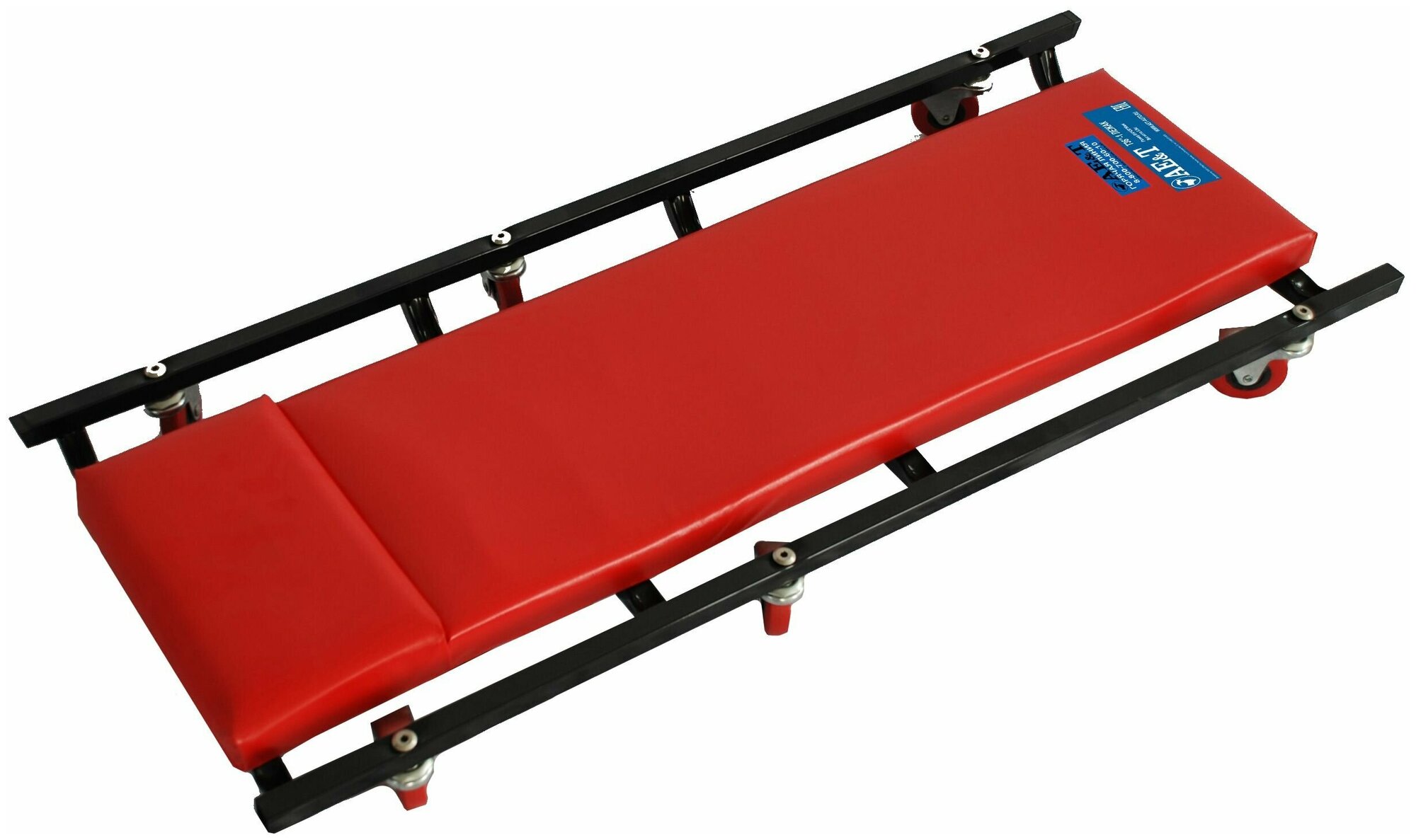 Лежак 36" мягкий . Удобный лежак для работы в положении "на спине". Мягкий (поролон обит кожзаменителем). Крепкий, надежный. 6 колес. Длина 91 см, ширина 43 см, нагрузка до 150 кг. Характеристики: Максимальная нагрузка 150 кг. Размер 914*430*90 мм. Вес нетто/брутто 4/4.6 кг. Упаковка 930*440*130 мм.