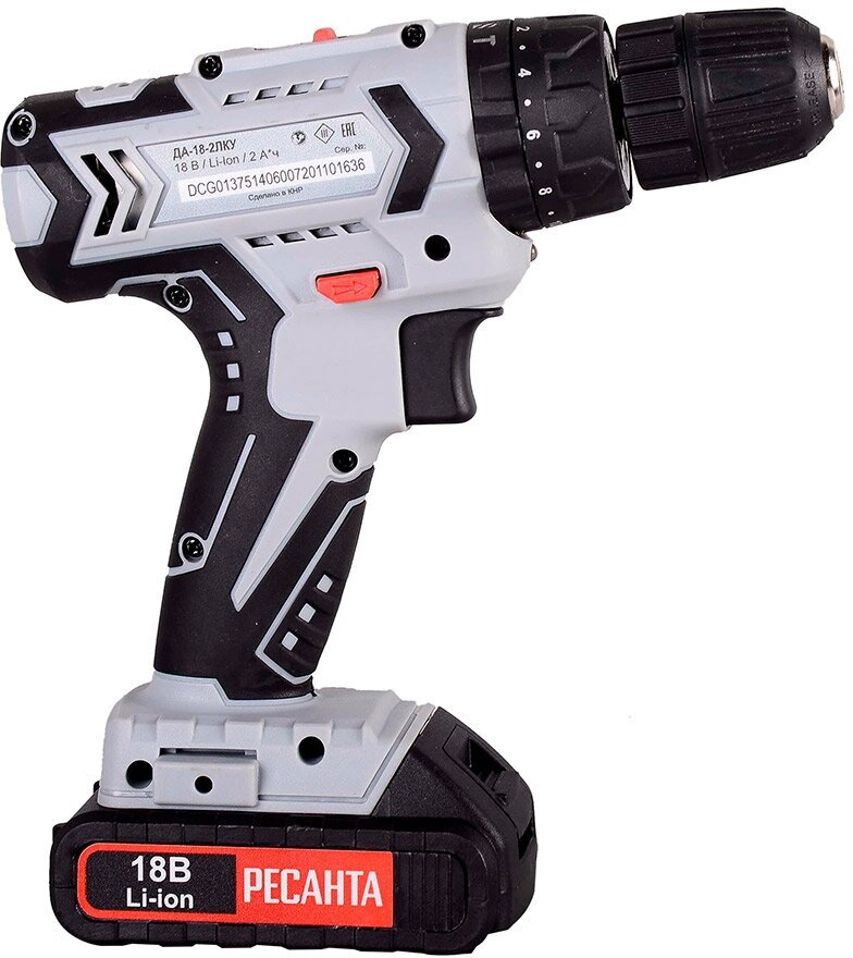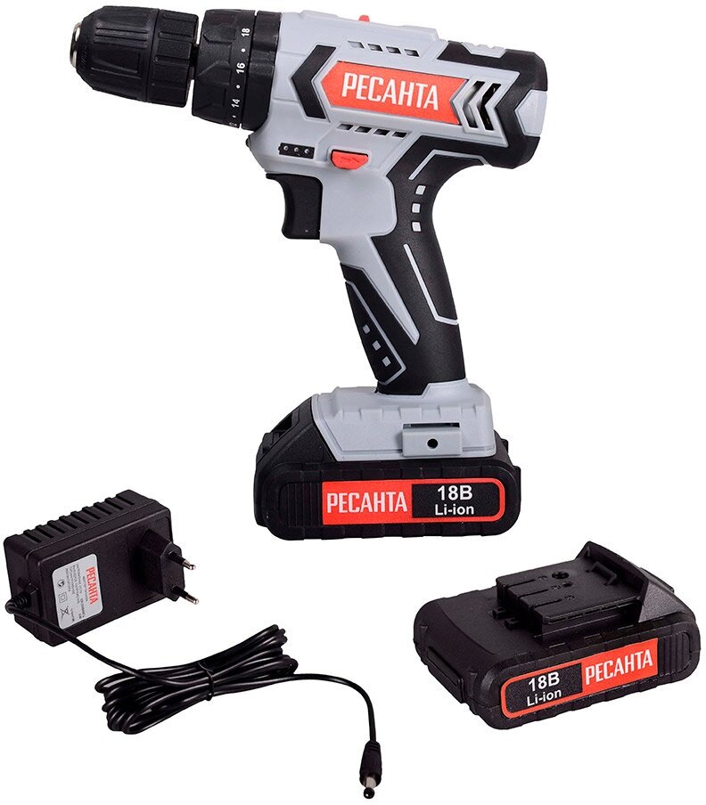 Ударная дрель-шуруповерт РЕСАНТА ДА-18-2ЛК-У 2Ач с двумя аккумуляторами [75/14/6]