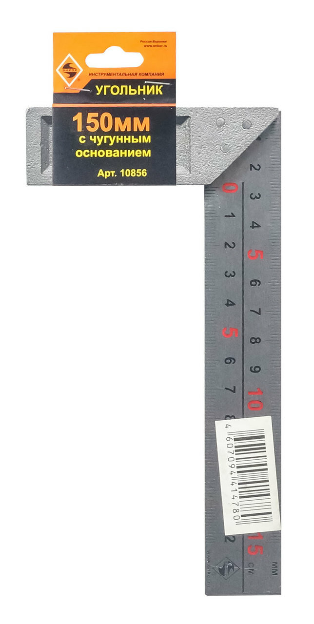 | Дополнительно | Угольник с чугунным основанием Энкор 10856 удобен для проверки прямого угла и проведения разметочных работ. Применяется в строительстве, когда нужно проверить острый угол или тупой. Шкала 150 мм имеет шаг 0.5 мм. На инструменте разметка нанесена с двух сторон. Основание угольника выполнено из чугуна и не скользит в руке. |