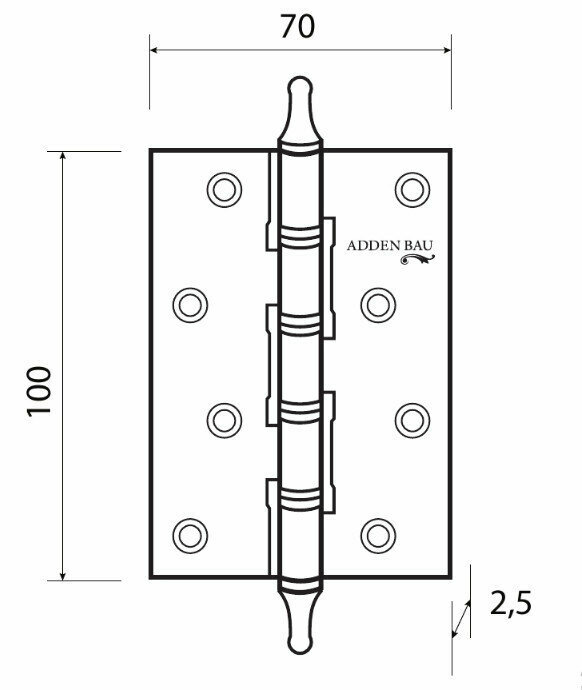 - Петля дверная универсальная ADDEN BAU 100X70X2.5 4W AGED SILVER