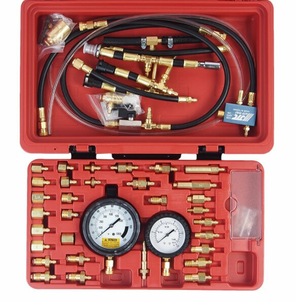 - В комплект входят манометр 3-12 со шкалами 0-145PSI и 0-1000кПа, манометр низкого давления 2-12 (для давления нже 15PSI), адаптеры, шланги и разнообразные разъёмы для оперативной диагностики инжекторов, а также надёжный пластиковый кейс и руководство по эксплуатации.