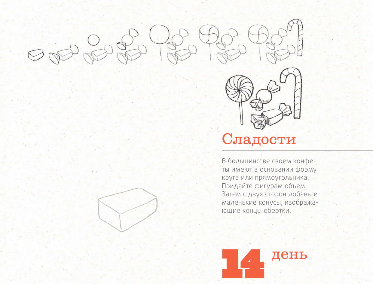 Любой начинающий художник понимает, что для развития навыков рисования необходимо практиковаться каждый день. Все, что вам нужно - взять карандаш и следовать простым инструкциям. Творите прямо в книге, благодаря формату которой вам не придется тратить время на поиск идеальной поверхности для рисования. Задания первых дней покажутся вам очень простыми, однако постепенно модели становятся более сложными; шаг за шагом вы научитесь придавать объем, смотреть на изображение с точки зрения перспективы, сможете создавать эффект глубины. Персонажи, растения, животные, предметы, транспортные средства, здания...Научитесь рисовать окружающий вас мир за 365 дней!