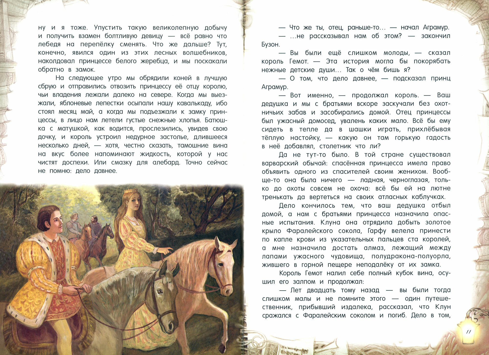 Чудесная книга. Купила из-за волшебных иллюстраций Анны Гантимуровой для крестницы и с удовольствием прочла сама. Очень интересный средневековый колорит у сказок. А история про лань немного напомнила мне "Алису в стране чудес" абсолютно нелогичными вставками про испытания братьев. В общем, я очень советую эту книгу, т.к. у нее совершенно волшебное оформление и интересное, оригинальное содержание. Очень довольна. Этот экземпляр оставлю себе, на подарок закажу новый, благо цена сейчас на нее демократичная.