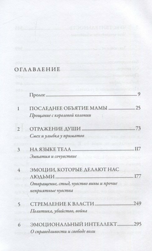 Испытывают ли животные гордость, стыд, вину или отвращение, как и мы, люди? Есть ли у них чувство справедливости и благодарности? Могут ли собаки смеяться и скорбеть, способны ли слоны утешать друг друга, а обезьяны завидовать, плести интриги и выстраивать планы мести? Чувствуют ли боль рыбы и умеют ли любить птицы? Что общего в поведении альфа-самцов шимпанзе и современных политиков?