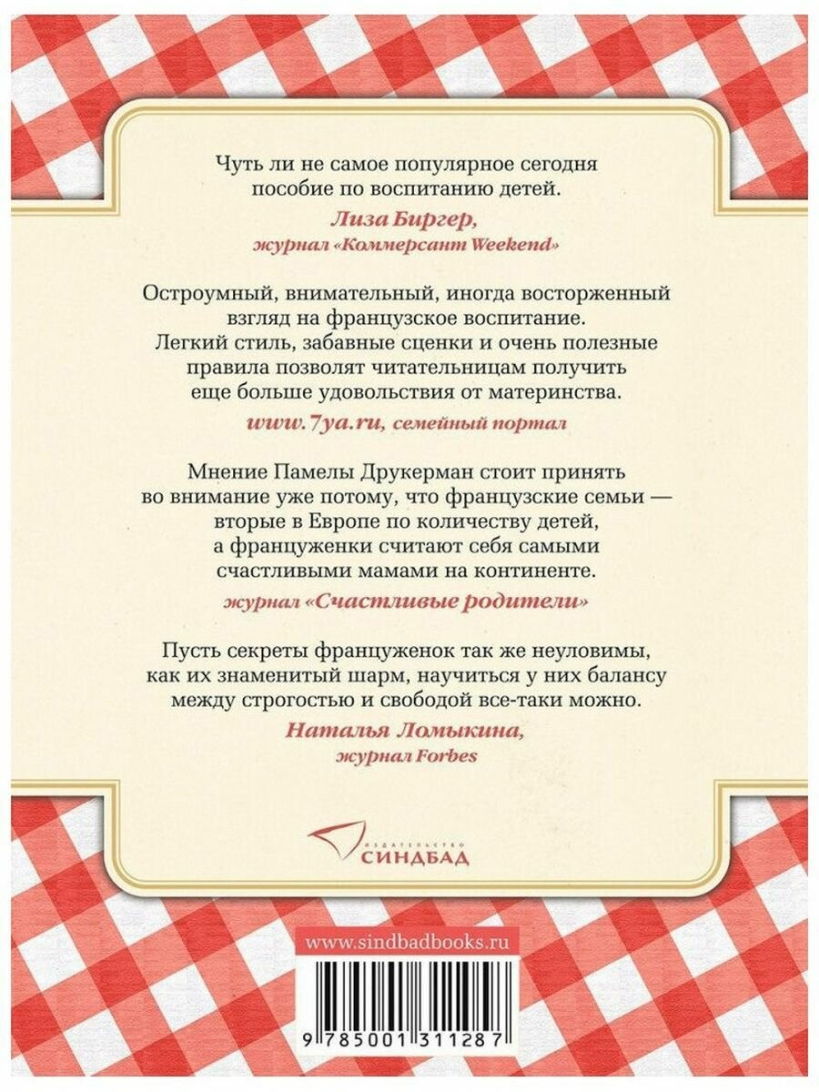.Американская журналистка Памела Друкерман, живущая в Париже с мужем-англичанином и тремя детьми, исследовала феномен французского воспитания. У нее получилась очень личная, живая, полная юмора и одновременно практичная книга, раскрывающая секреты французов, чьи дети прекрасно спят, хорошо едят и не допекают своих родителей.
