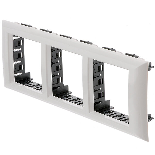 ЭУИ "Avanti" – это образец сочетания передового дизайна и высокой надежности. Их можно применять как на промышленных объектах, так и в жилых помещениях с дизайнерским ремонтом. Эта серия была вдохновлена традициями русского авангарда начала XX века. В состав системы входят: каркасы, механизмы и рамки. Механизмы устанавливаются в кабель-каналы, лючки или башенки с помощью каркасов и рамок. Особая конструкция аксессуров позволяет повысить степень пыле- и влагозащиты до IP 55, что дает возможно размещать электроустановочные изделия даже в помещениях с повышенным уровнем влажности и загрязненности, не опасаясь попадания влаги или мусора во внутреннюю часть механизма. При монтаже механизм устанавливается в рамку, а та, в свою очередь, фиксируется на каркасе и устанавливается в нужном месте - на стене, в лючке, башенке или кабель-канале. Рамка изготовлена из АБС-пластика и имеет цвет "Белое облако". Предназначена для установки шести модулей ЭУИ. Артикул 4400916