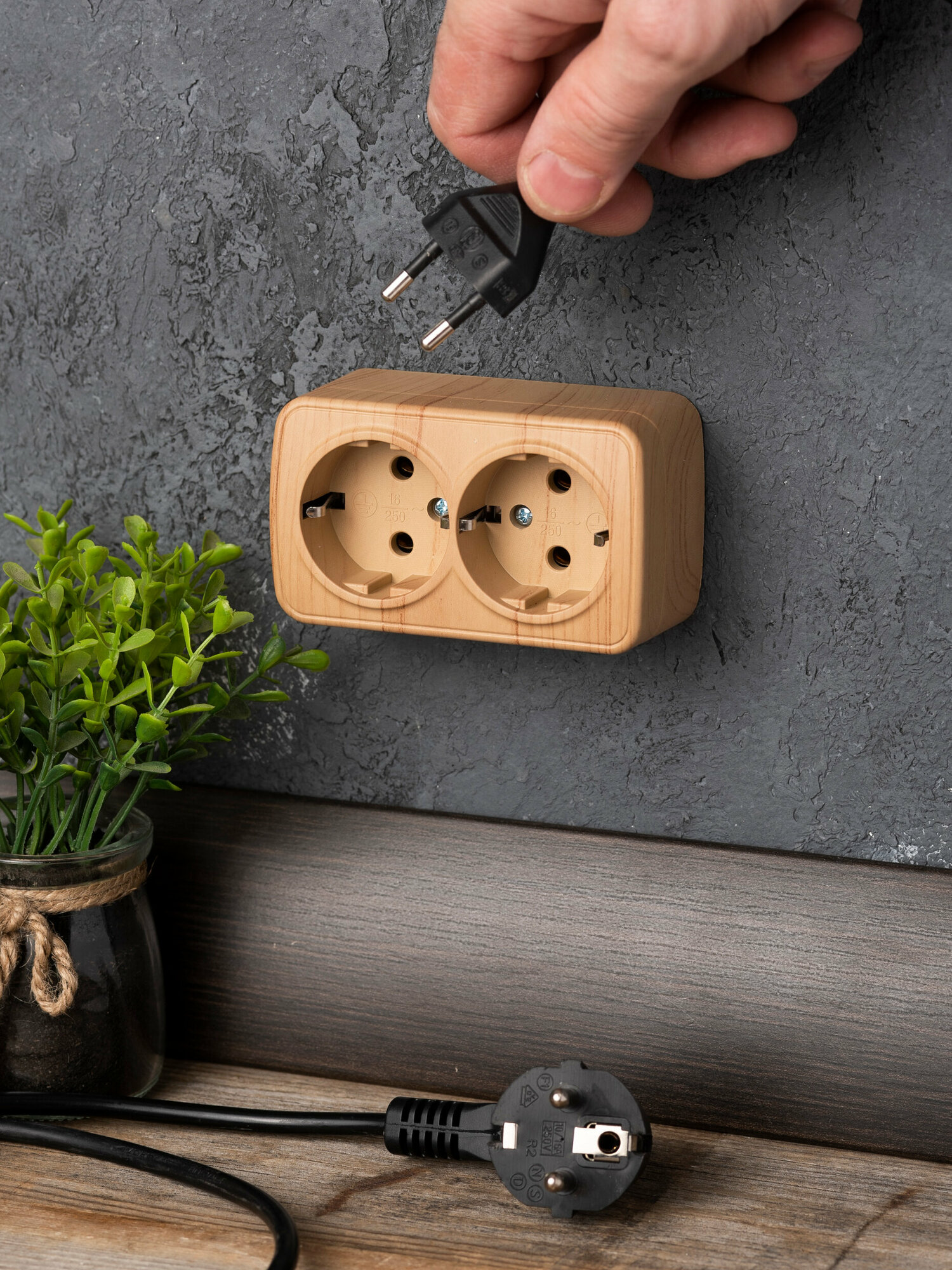 Серия товаров «Минск» — электроооборудование открытой установки, куда входят: выключатели (одноклавишные, двухклавишные, с индикацией и без), розетки (одноместные, двухместные, с выходами под кабели и антенны). Широкий модельный ряд с тремя вариантами цвета — белый, светлое и темное дерево — подстроится под ваши запросы и интерьер. Преимущества розеток и выключателей серии Минск:• соответствуют ГОСТ IEC 60884-1-2013 и ГОСТ P 51324.1-2012;• контактная группа совместима с алюминиевыми и медными проводами;• пластиковое основание, не поддерживающее горение;• компактный корпус;• быстрая установка открытого типа;• IP20 - для установки в жилых и офисных помещениях; Минск Розетка 2-местная ОП 16А с заземлением светлое дерево EKF Basic Одноместная розетка с заземлением — электрооборудование открытой установки, которое легко монтируется как на деревянные, так и на кирпичные или блочные поверхности. Благодаря свободному доступу вы можете регулярно проверять исправность работы механизмов. Заземляющий контакт помогает стабилизировать работу электроприборов и обеспечивает их безопасную работу. Светлое дерево – прекрасное решение для дачных домов, крытых террас и других помещений с деревянной отделкой или декорированных в стиле эко и прованс. Конструкция и материалы оптимизированы для надежной и долговечной службы изделий, быстрого и удобного монтажа. номинальный ток — 16 А. Максимум мощности — 3.5 кВт;есть заземление — стабильная и безопасная работа приборов;гарантия от производителя — 5 лет; Заказать любое оборудование по выгодной цене из ассортимента интернет-магазина EKF Маркет можно с доставкой по России. Доставка по Москве и Московской области может осуществляться до ближайшего к вам пункта самовывоза. Вы можете оплатить товар наличными или картой при получении или онлайн при оформлении заказа.