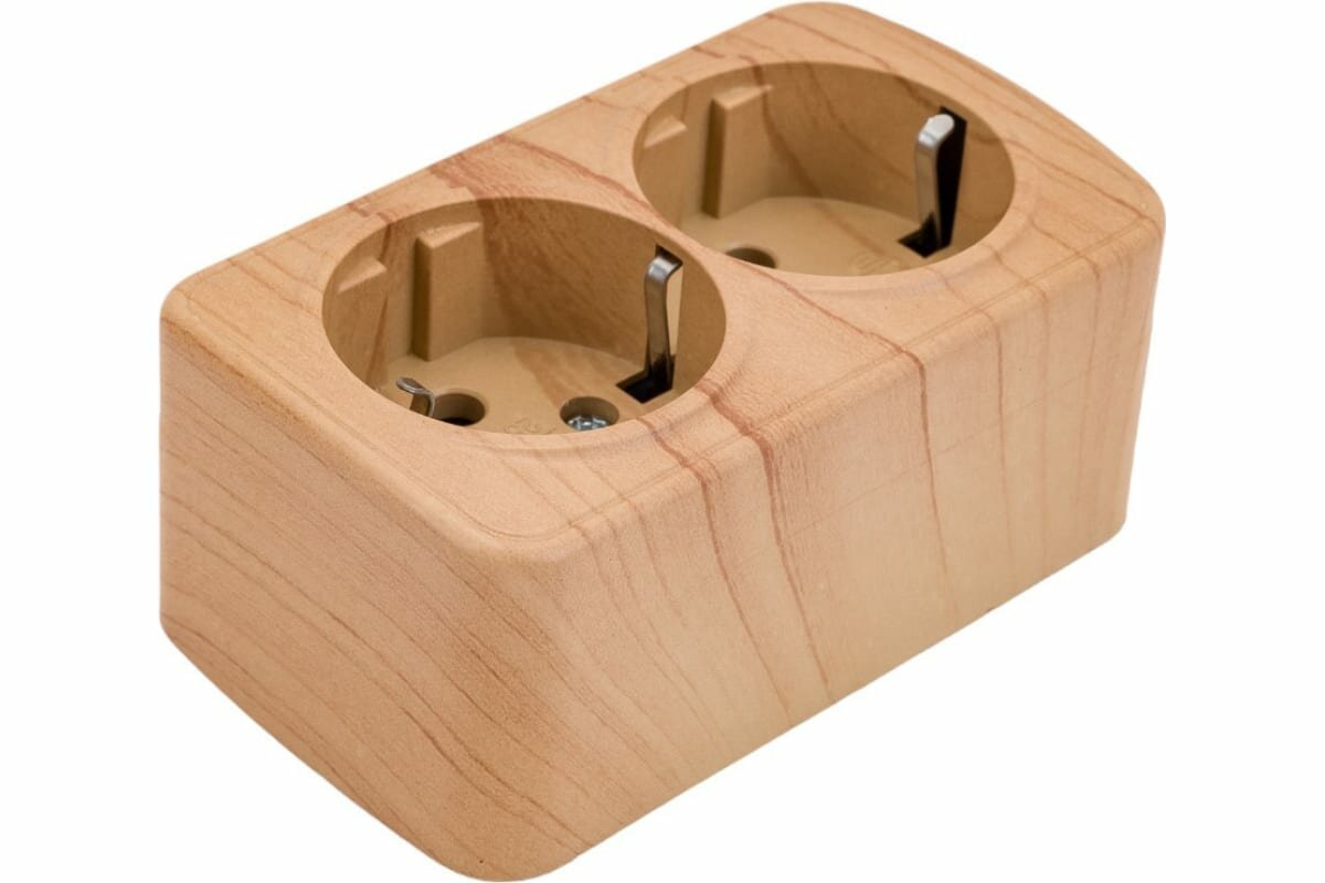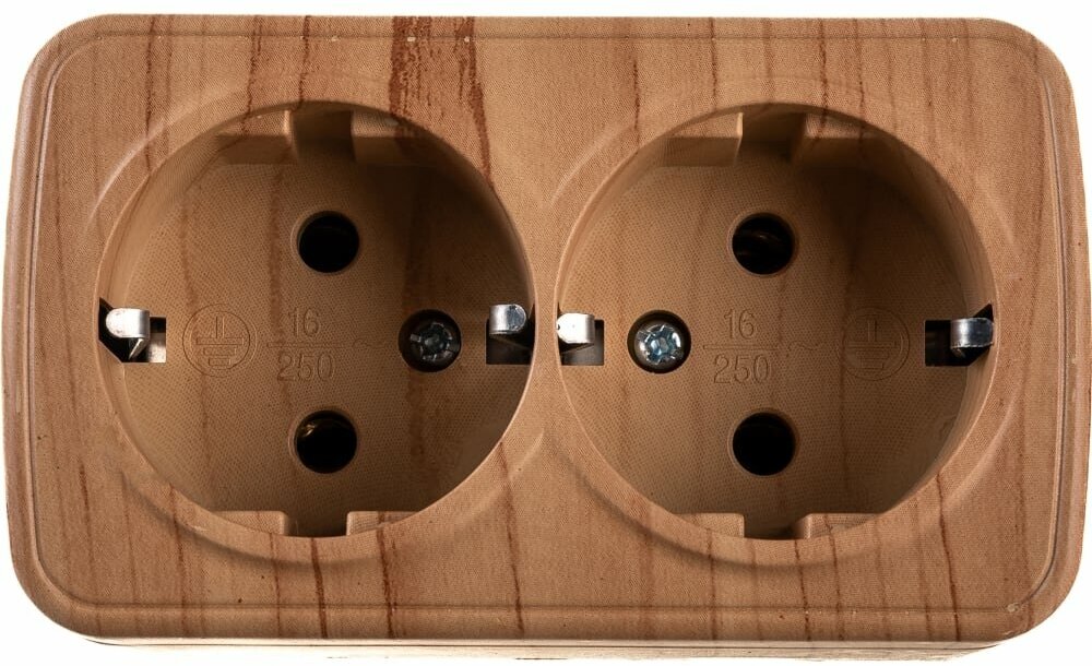 EGR16-128-30 Розетка 2-местная ОП Минск 16А с заземлением светлое дерево EKF