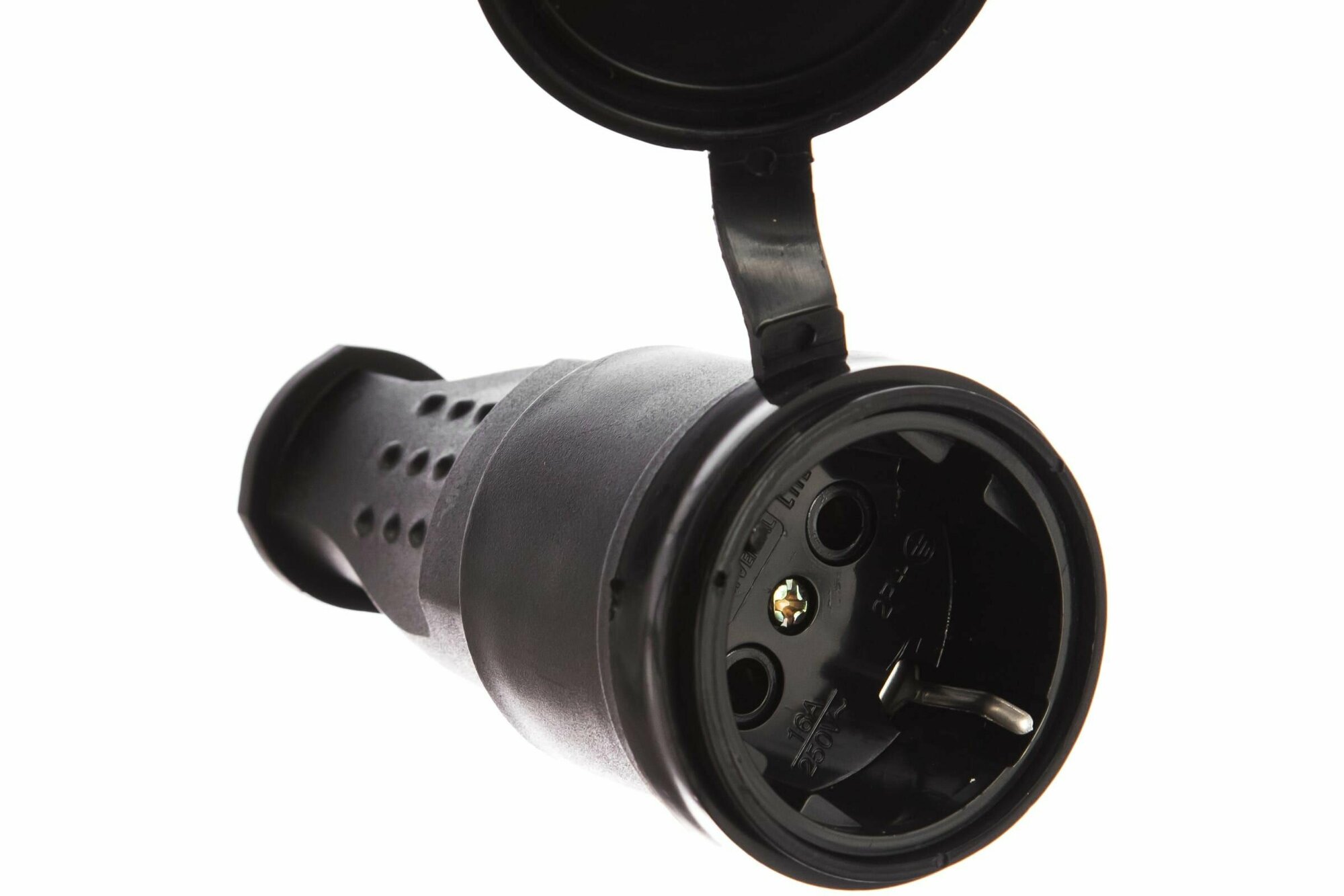 Штепсельный разъем однофазный с заглушкой (с заземлением 16 А 250 В IP44 каучук черный) Universal (83302)