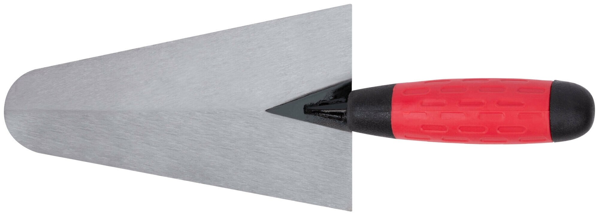 Мастерок бетонщика. Для нанесения строительных смесей. Материал: высокоуглеродистая сталь, пластиковая прорезиненная ручка.