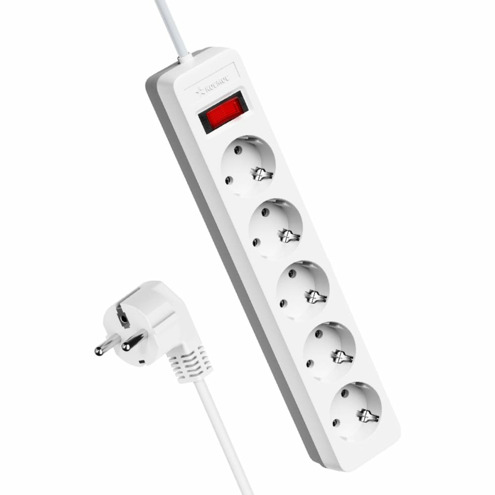 Удлинитель с сетевым фильтром 5х3м с заземл. 10А IP20 2.2кВт 3х0.75 индикатор сети бел. FKsm3m-5g(W) КОСМОС FKsm3m-5gW 472203