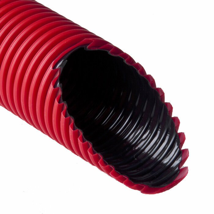 Труба гофр. двустенная IEK CTG12-063-K04-050-RПНД d=63мм красная (50м)Двустенная (также сталкивается двухслойная) гофрированная труба ПНД/ПВД предопределена для обороны силовых кабелей (защитная гофрированная труба для электропроводки), сигнальных и информационных рядов, а еще рядов связи от брутального влияния находящейся вокруг среды и механических повреждений. Спасибо резвому , достоверному и дешевому монтажу, ПНД обширно используется в строительстве для заливки в бетон и прокладки подземных коммуникаций, в ЖКХ, в транспортной инфраструктуре при строительстве дорог, телекоммуникациях, электроснабжении, а еще в кое-каких случаях для аква канализации. Технические характеристики двухслойных гофрированных труб ПНД ПВД 1.1 Материал: внешняя стенка ПНД (полиэтилен низкого давления), внутренняя стенка ПВД (полиэтилен высокого давления). 1.2 Цвет (внешняя стенка трубы) красный RAL 3001. 1.3 Степень защиты IP56 по ГОСТ 14254 (МЭК 529). 1.4 Класс защиты от поражения электрическим током 0 по ГОСТ Р МЭК 536. 1.5 Минимальный радиус изгиба трубы 8 диаметров (гибкая гофрированная труба) 1.6 Прочность гофрированных труб 450Н на 5 см, не менее. 1.7 Диэлектрическая прочность трубы 2000В (50Гц, в течение 15 мин), не менее. 1.8 Сопротивление изоляции 100МОм, не менее. 1.9 Срок службы не менее 50 лет.