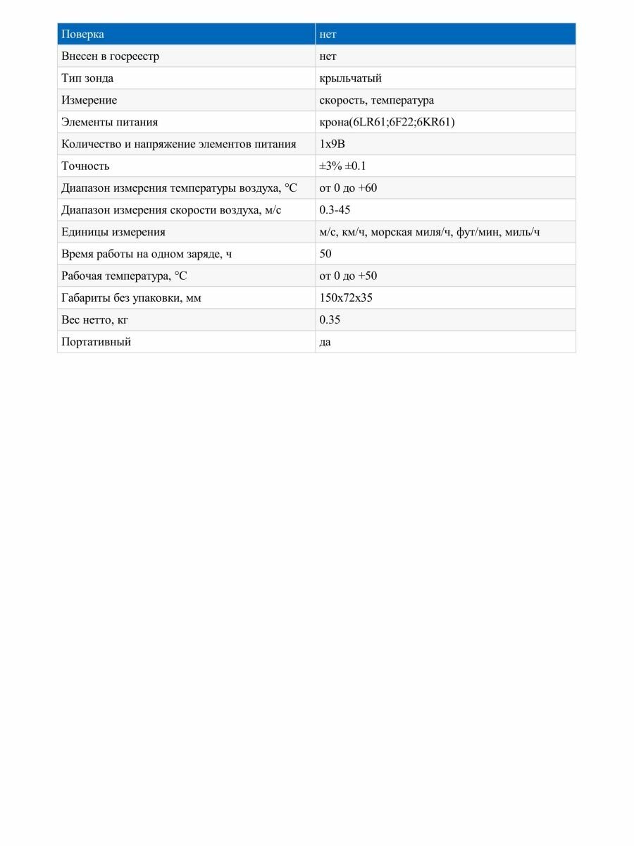| Диапазон измерения скорости воздуха | 0.3-45 |