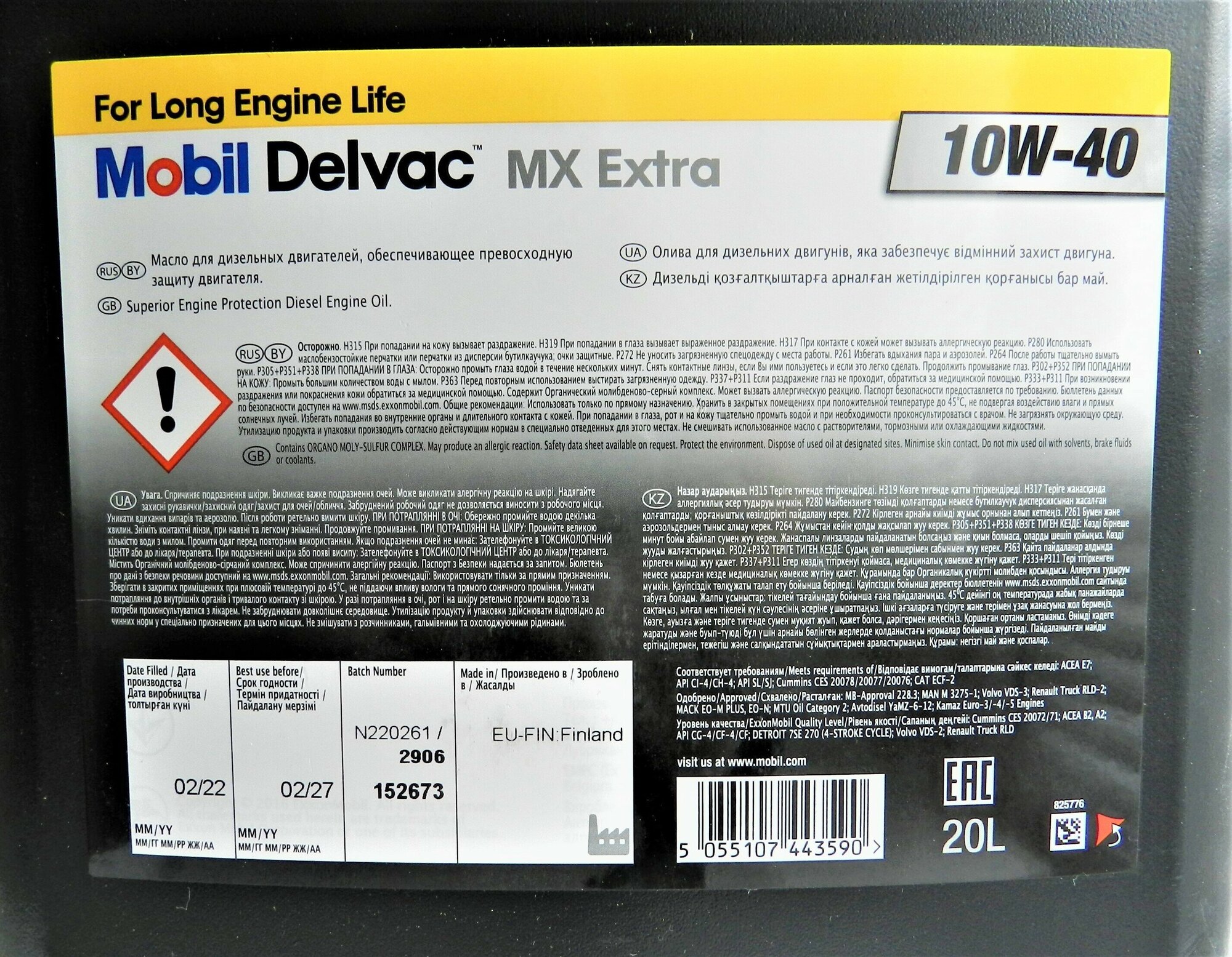 Масло Mobil Delvac MX Extra 10W-40 - синтетическое масло для высоконагруженных двигателей, обеспечивающее отличное смазывание современных бензиновых и дизельных двигателей, работающих в суровых условиях, обладающее повышенными свойствами поддержания чистоты двигателя, что продлевает сроки службы моторов. Данный продукт превосходит либо соответствует спецификациям большинства основных европейских и американских производителей дизельных двигателей.