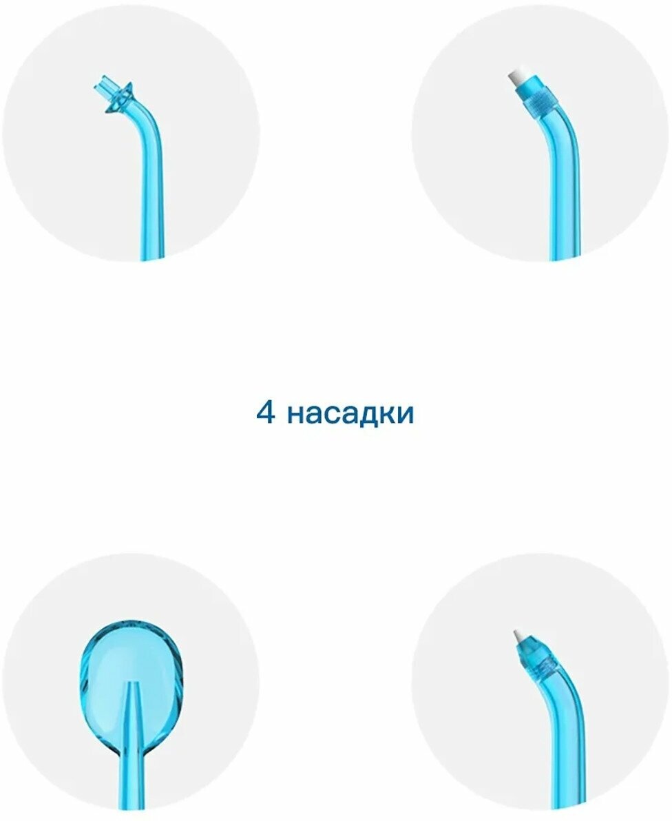 | Комплектация | Ирригатор, Стандартная насадка, Ложка, Пародонтическая насадка, Ортодонтическая насадка, Кабель для зарядки |