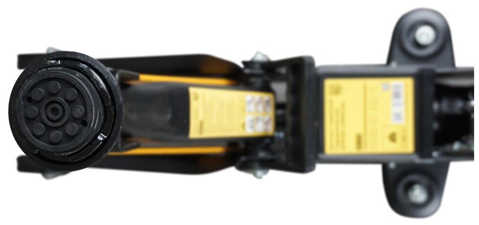Домкрат с гидравлическим механизмом, предназначенным для поднятия грузов на заданную высоту. Оборудован металлическими колесами.