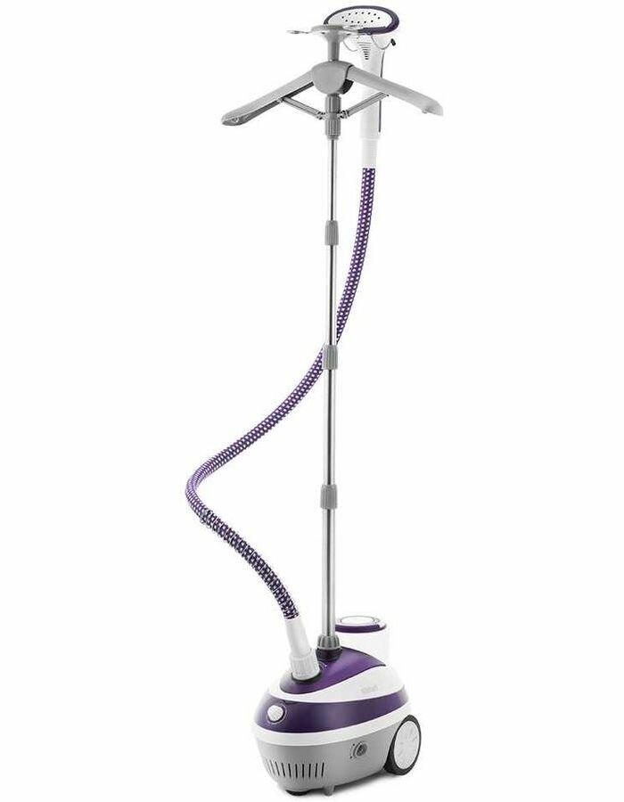 Очень простой в использовании, высокий, достаточно длинный шланг. Отпаривает одинаково хорошо, как легкие (шифон, хлопок, шелк), так и плотные ткани (джинса, шерсть). Хороший поток пара, готов к работе в течение одной минуты. Удобные плечики и зажимы для брюк и юбок, крепкие, вещи с них не выскальзывают.