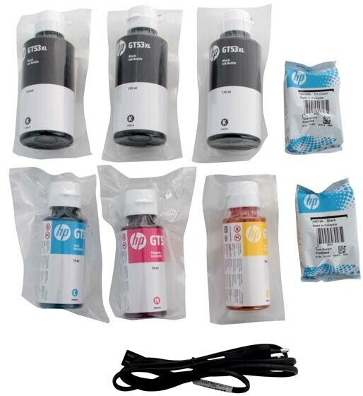| Тип картриджа | HP GT53 оригинальная бутылочка с черными чернилами (90 мл) 1VV22AE, HP GT53XL оригинальная бутылочка с черными чернилами (135 мл) 1VV21AE, HP GT52 оригинальная бутылочка с голубыми чернилами M0H54AE, HP GT52 оригинальная бутылочка с пурпурными чернилами M0H55AE, HP GT52 оригинальная бутылочка с желтыми чернилами M0H56AE, HP GT51XL оригинальная бутылочка с черными чернилами HP (135 мл) X4E40AE |
