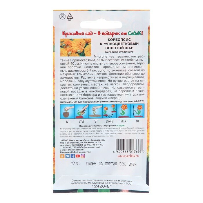 Сервис сравнения цен СкидкаГИД предлагает сравнить цены на товар «Кореопсис СеДеК Золотой шар 1 гр»