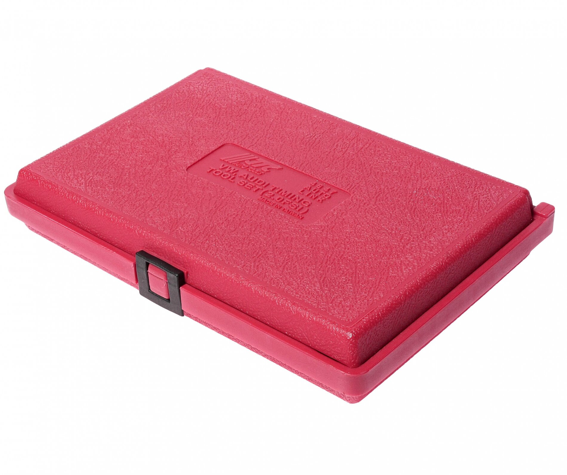 Комплект фиксаторов, позволяющих зафиксировать распредвал и натяжители ремня газораспределительного механизма. Устройства, выполнены из цельного металла и покрыты слоем защиты от появления ржавчины. Приспособления изготавливаются для двигателей производства компаний VW и AUDI типа. FSI объемом 2.0 литра, выпускаемых с 2003 года.