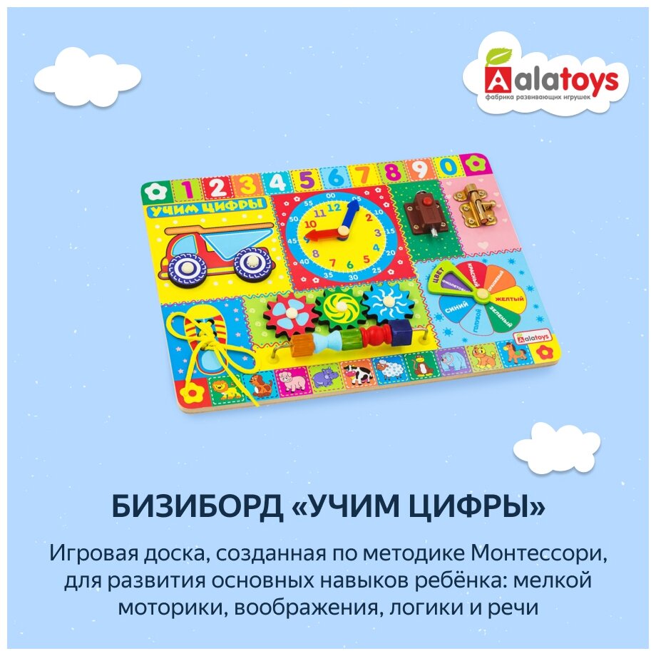 Деревянная игрушка Alatoys Бизиборд Учим цифры
