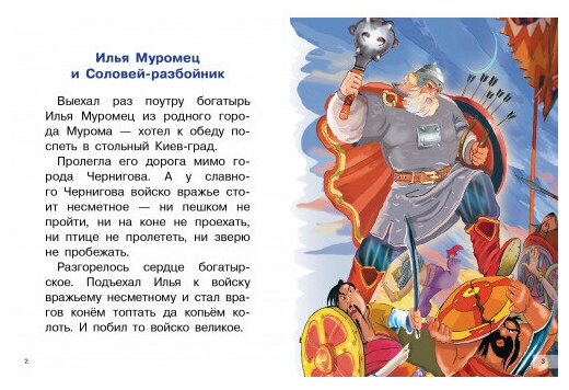 В книгу кроме былин об Илье Муромце, Добрыне Никитиче и Алеше Поповиче вошла сказка о силаче Никите Кожемяке, победившем лютого змея.