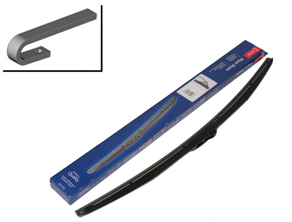 Гибридные щетки стеклоочистителей DENSO - это: динамичный дизайн. Полностью закрытые, стильные, с матовым черным покрытием. Низкий профиль, ненавязчивая форма. Очень просто крепятся на держателе щетки. Встроенная крепежная система. Превосходные показатели .Специальным образом изогнутый пружинный каркас обеспечивает превосходное прилегание к ветровому стеклу . Неподвижная резиновая рабочая поверхность с графитовым покрытием обеспечивает более эффективные эксплуатационные качества . Самый долгий срок службы . Самый низкий уровень шума среди других брендов . Высокая устойчивость к грязи и пыли. Покрытие защищает резину от ультрафиолетового излучения и других природных факторов Лучшие показатели в холодных условиях; практически не подвержены влиянию снега и льда