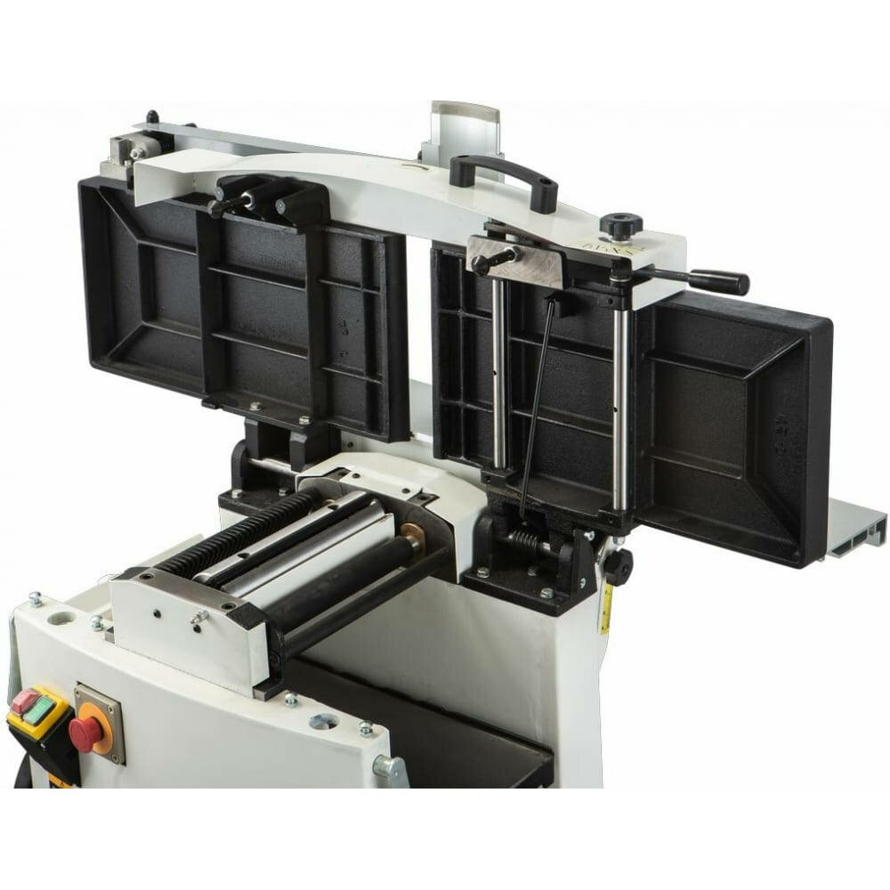 | Описание | Фуговально-рейсмусовый станок JET JPT-260 – это многофункциональный агрегат для обработки заготовок из дерева. ,,Фуговально-рейсмусовый станок JET JPT-260 отличатся надежностью, многофункциональностью и хорошими рабочими характеристиками. Благодаря компактным габаритам он оптимально подходит для небольшого производства или мастерской.,,Стол легко поднимается для перехода от фугования к функциям рейсмуса. Поверхность стола идеально отполирована, что обеспечивает идеальное скольжение заготовки. За точность реза отвечают три ножа и строгальный вал «Helical».,,Возможность подключения пылесоса позволяет сохранить рабочее место в чистоте.,,Макс. высота среза:3 мм,Три фазы ,Размер рабочего стола (рейсмус):540 мм,Размер рабочего стола (фугование) |