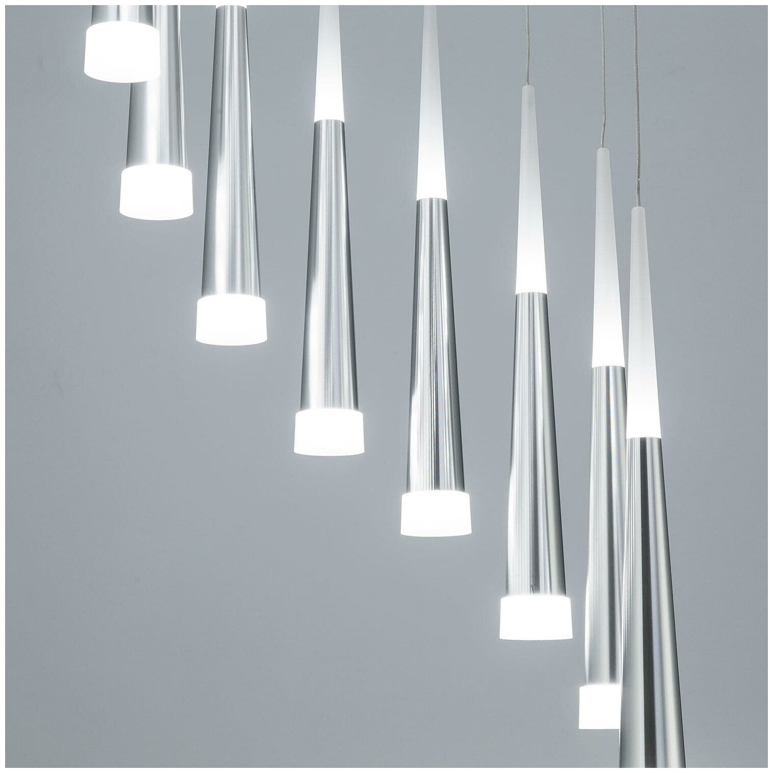 Люстра с 14 LED-светильниками дизайном напоминает всем известные «поющие ветерки»: круглое металлическое основание, длинные и короткие «струны», на концах которых на разной высоте расположены небольшие конусовидные светильники из металла и оптического полимера. Возможно, именно восточное изобретение, служащее для снятия стресса, и стало источником вдохновения для дизайнеров знаменитого датского производителя. Благодаря оригинальной вертикальной конструкции, а также большой площади освещения люстра прекрасно подходит для больших помещений и вполне способна стать не только объектом для медитации, но и главным акцентом в интерьере гостиной или спальни.