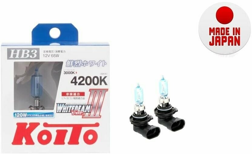 Лампы KOITO Whitebeam являются вершиной развития технологий автомобильного освещения, созданные с применением самых современных технологий и ноу-хау компании KOITO. Разработанные на основе опыта поставок систем освещения крупнейшим мировым автопроизводителям, лампы серии Whitebeam воплотили в себе весь опыт и достижения компании за почти вековую историю работы. Удвоенная яркость света фар за счет применения нескольких технологий Температура свечения нити накаливания, выполненная из материала с повышенной тугоплавкостью, выше, чем в стандартных галогеновых лампах. Смесь инертных газов, специально закаченных в колбу под давлением, в два раза превышающим таковое в обычной лампе. Надежность и долгий срок службы Лампы KOITO Whitebeam произведены на заводе компании KOITO в Японии и отвечают требованиям к качеству продукции, поставляемой на конвейеры. Срок службы лампы соответствует спецификациям производителей автомобилей и прослужат на 25-100% дольше, чем похожие продукты других производителей. Яркий белый свет для стильного дизайна Лампы KOITO Whitebeam обеспечат на 50% более яркий и белый свет Ваших фар, чем стандартные лампы. За счет уникальной технологии нанесения покрытия на колбу, свет ламп серии Whitebeam составляет 4200К, как у стандартной ксеноновой лампы, гарантируя Вам не только стильный вид фар Вашего автомобиля, но и отличную освещенность в любую погоду. Безопасность для фар Лампы KOITO Whitebeam разработаны для применения в любых фарах, они не выделяют избыточного тепла и имеют стандартное энергопотребление. Колбы ламп Whitebeam изготовлены из стекла – более тугоплавкого, чем обычное, и фильтрующего УФ-часть излучения. Это уменьшает выделение тепла в фаре и позволяет использовать эти лампы не опасаясь за сохранность оптики. Правильная геометрия светового потока Свет фар с установленными лампами KOITO Whitebeam не будет ослеплять встречных и попутных водителей. Значение освещенности ламп укладывается в требования госта и не будут слепить впереди ведущего водителя. Лампа KOITO Whitebeam III хорошо освещает зону ближней обочины, и также неплохо освещается зона дальней обочины.